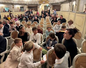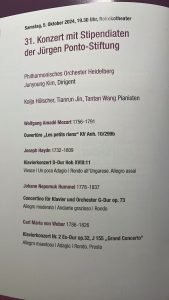 Auch in diesem Jahr – wie zuvor – durften sich die Schwetzinger über den Besuch besonderer Talente freuen, die von der Ponto-Stiftung ausgezeichnet worden sind und gefördert werden: Drei der vielleicht derzeit größten musikalischen Jungpianisten Deutschlands, allesamt Preisträger ihrer jeweiligen Altersgruppe beim Wettbewerb „Jugend musiziert“ 2024, gastierten am vergangenen Samstag im Rokokotheater. Und weil es der Mozartgesellschaft besonders wichtig ist, mit Musik Brücken zu bauen und gerade auch die jungen Menschen für die Musik und die außergewöhnliche Theateratmosphäre in Schwetzingen zu gewinnen, hatte sie dem Klavierstudio für begabte Kinder und Jugendliche unter der Leitung von Tatjana Worm-Sawosskaja für dieses besondere Konzert zehn Freikarten zur Verfügung gestellt. Damit traf sie auf fruchtbaren Boden: Denn die jungen Eleven des Klavierstudios, alle zwischen sieben und dreizehn Jahren alt, sind ebenfalls bühnenerfahren und die meisten von ihnen konnten mit ihrer Fingerfertigkeit und Kunst am Klavier selbst bereits Preise bei zahlreichen Wettbewerben in ihrer Altersgruppe gewinnen. Für diese Zielgruppe war es besonders wertvoll, auf den besten Plätzen ganz vorne im Parkett sitzen zu dürfen. So konnten sie ihren virtuosen Vorbildern direkt aus der Nähe auf die Finger sehen und das harmonische Zusammenspiel der pianistischen Solisten mit dem Philharmonischen Orchester Heidelberg bewundern.