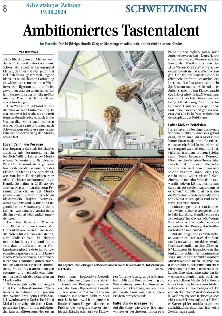 Henrik Klinger, erfolgreicher Absolvent des Klavierstudios 25.09.2024 1 Min Read 0 46 Kategorie : newsPresse Tagged in: news Share Article: