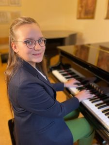 Matilda Getto, 12 Jahre alt, angehende Komponistin und Schülerin der Dozentin im Klavierstudio, bekannter tschechischen Komponistin Kateřina Piňosová-Růžičková, hat beim Song Contest „Dein Song für EINE WELT!“ 2023/2024 in Berlin mit großem Erfolg teilgenommen.