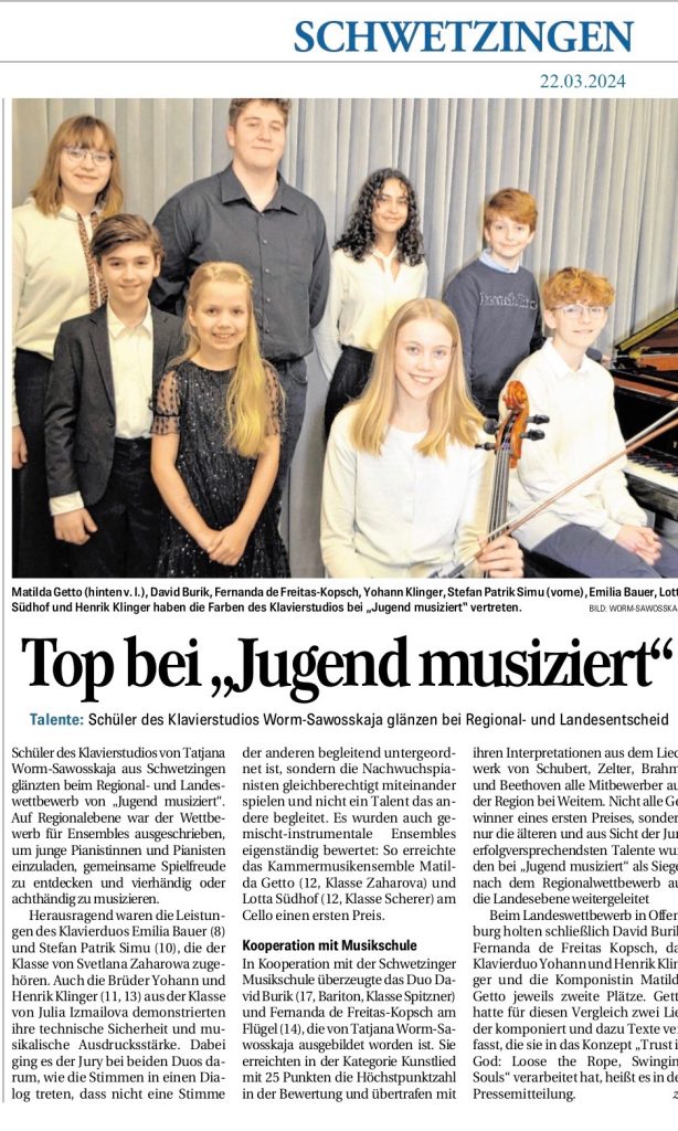 1.Preis beim 24.Klaviertüden-Wettbewerb in St.Georgn, Schwarzwald. Gioele Luciano Infurna, 9 J., und Johannes Anselm Inselmann, 6 J. Next Story