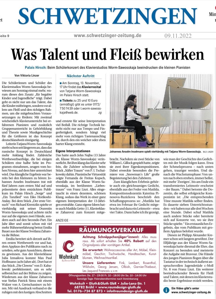 N Nicht nur musikalisch ein Gedicht: Schülerkonzert im Palais Hirsch Schwetzinger Woche 09.11.2022 Next Story
