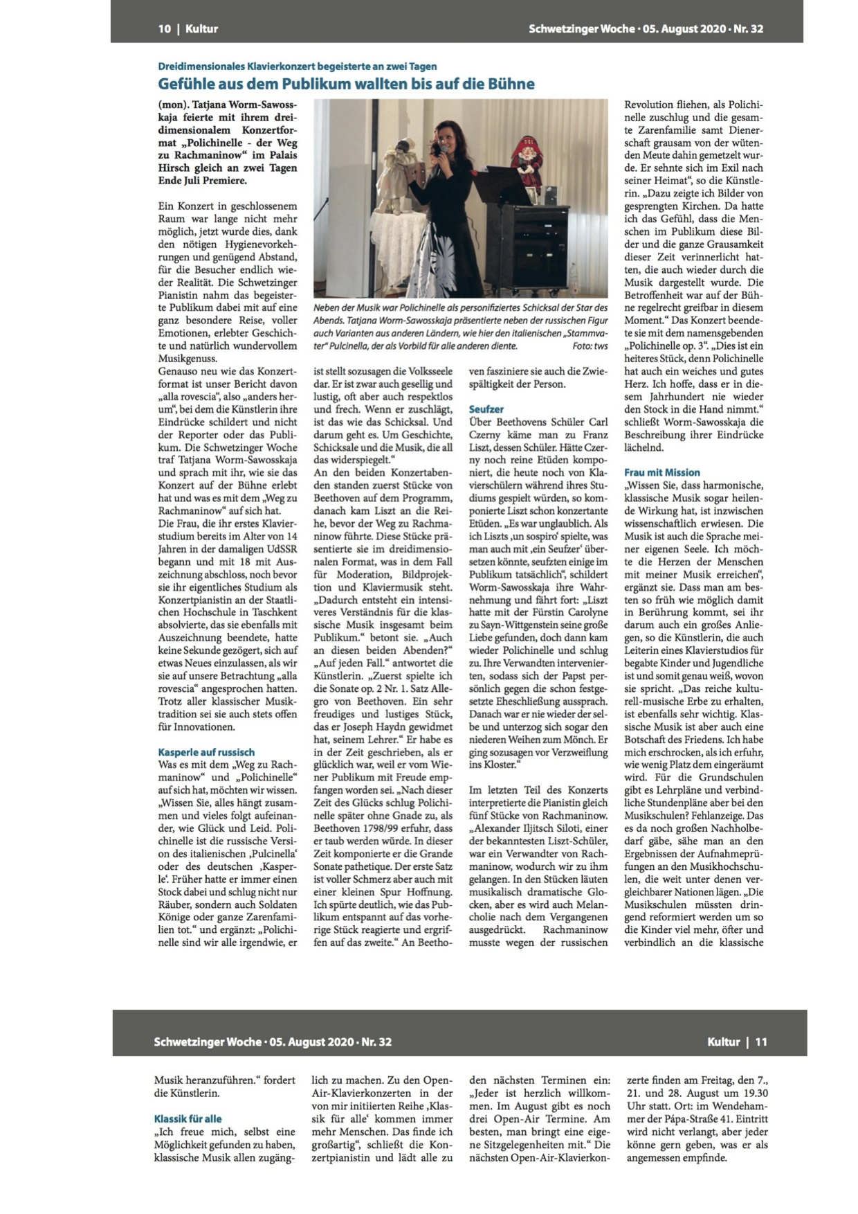 Pressebericht über den Klavierabend am Volkstrauertag. Schwetzinger Woche