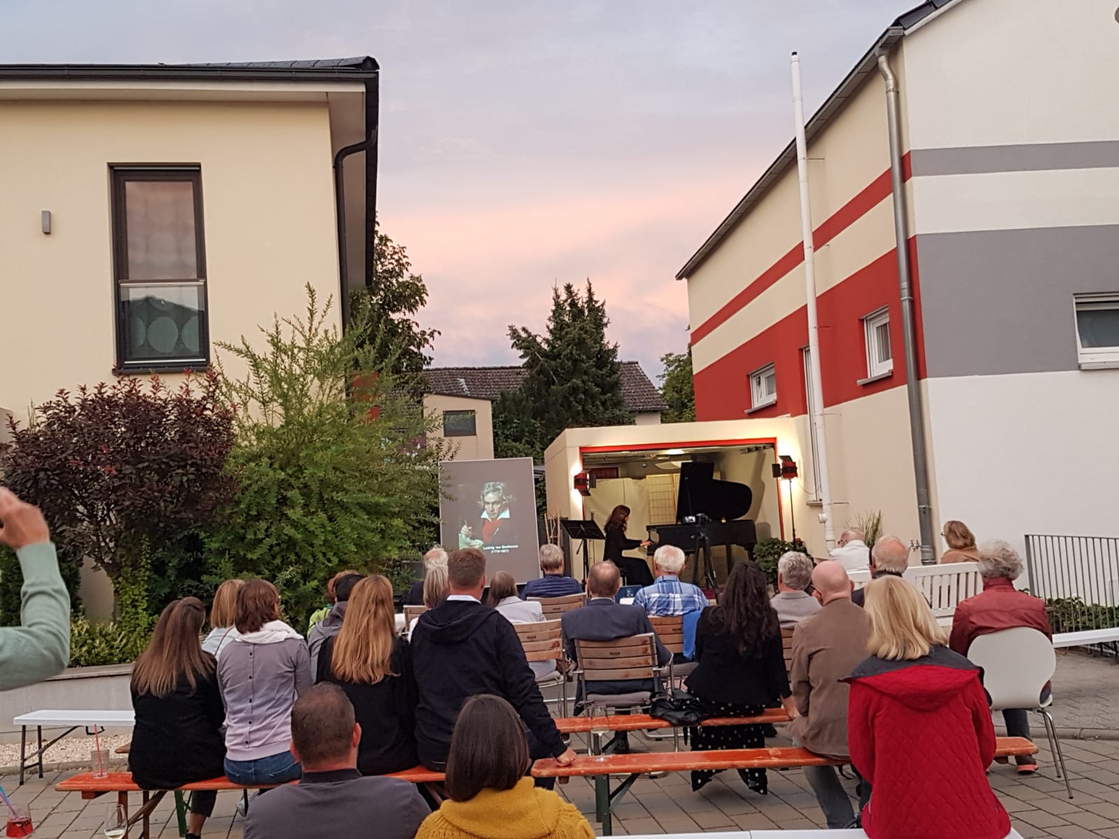 Die Zuhörer hatten es sich auf Sitzen und Bänken im Wendehammer in der Pàpa-Straße am Haus der Pianistin bequem gemacht und „die Anwohner der Straße unterstützten sie beim letzten Konzert dieser Art im Corona-Sommer 2020“, schreibt Walter Benesch abschließend. Danach hat die Konzertpianistin und Inhaberin einer Klavierschule eine kleine Bilanz für den Klassik-Sommer 2020 gezogen.