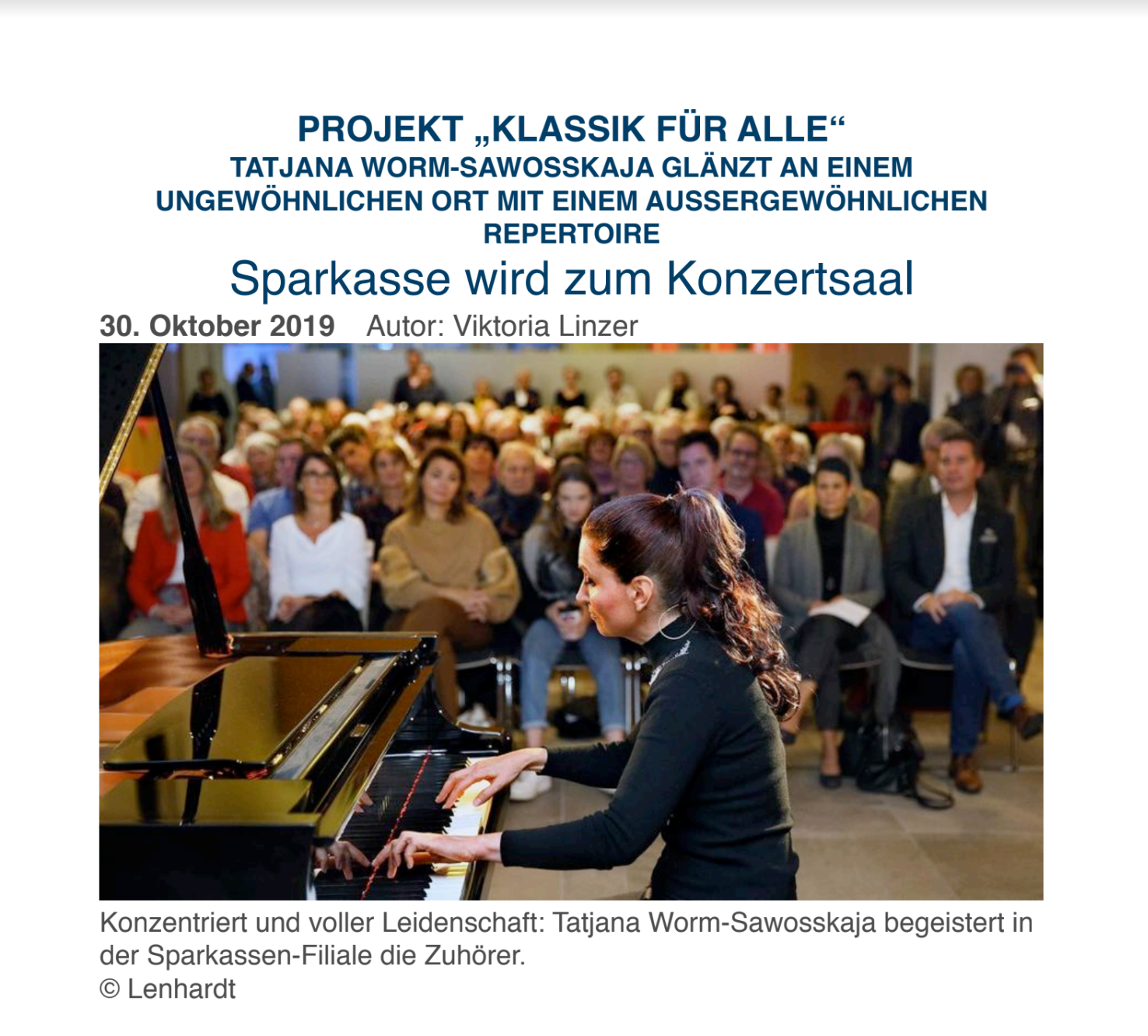 Musik genossen. Nach dem Begrüßungswort von Markus Fissl, Regionaldirektor der Sparkasse Heidelberg, nahm Worm- Sawosskaja die Zuhörer mit auf eine musikalische Reise, die im Wien des 18. Jahrhunderts begann.
